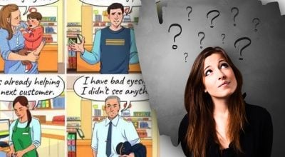 Всичко, което трябва да направите, е да погледнете снимката по-долу и да определите кой от хората в магазина е откраднал нечий портфейл. Трима от хората на снимката казват истината, но един от тях лъже.